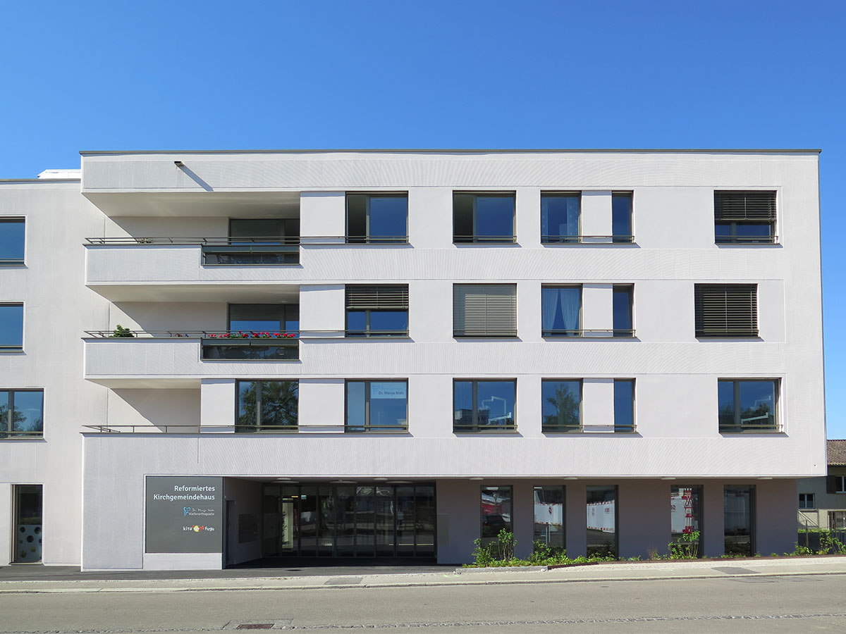 Die Praxis befindet sich vis-à-vis vom Gemeindehaus im Neubau des Reformierten Kirchgemeindehauses im ersten Stock. Bitte benutzen Sie den linken Eingang.